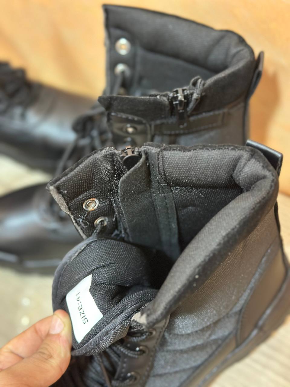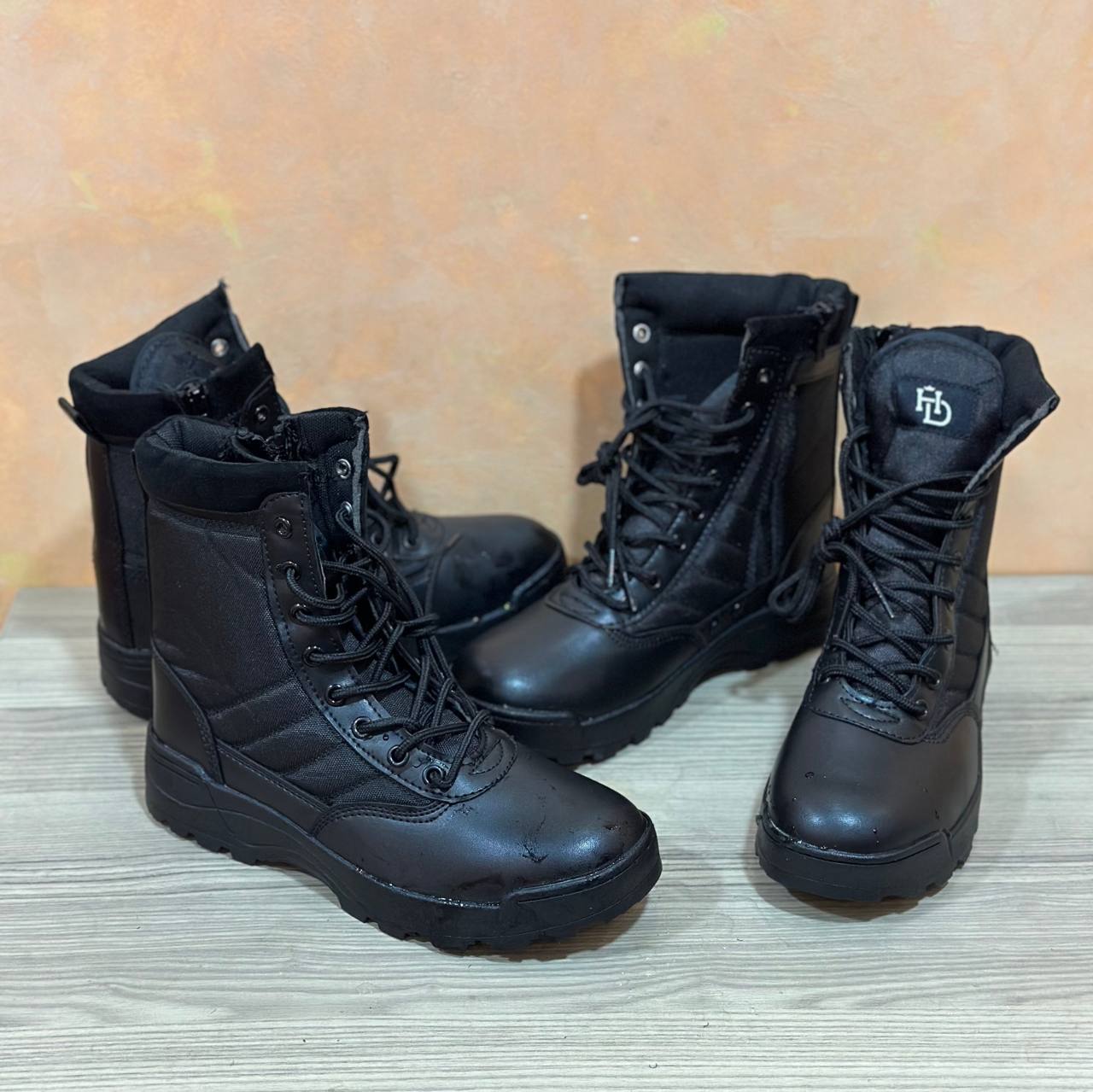 حذاء عملي بتصميم عسكري قوي، مثالي للاستخدام اليومي، العمل الميداني، أو الأنشطة الخارجية. مصنوع من خامات متينة تجمع بين الجلد الصناعي والنسيج المقوّى ليمنحك حماية وثباتًا عاليين مع راحة ممتازة.